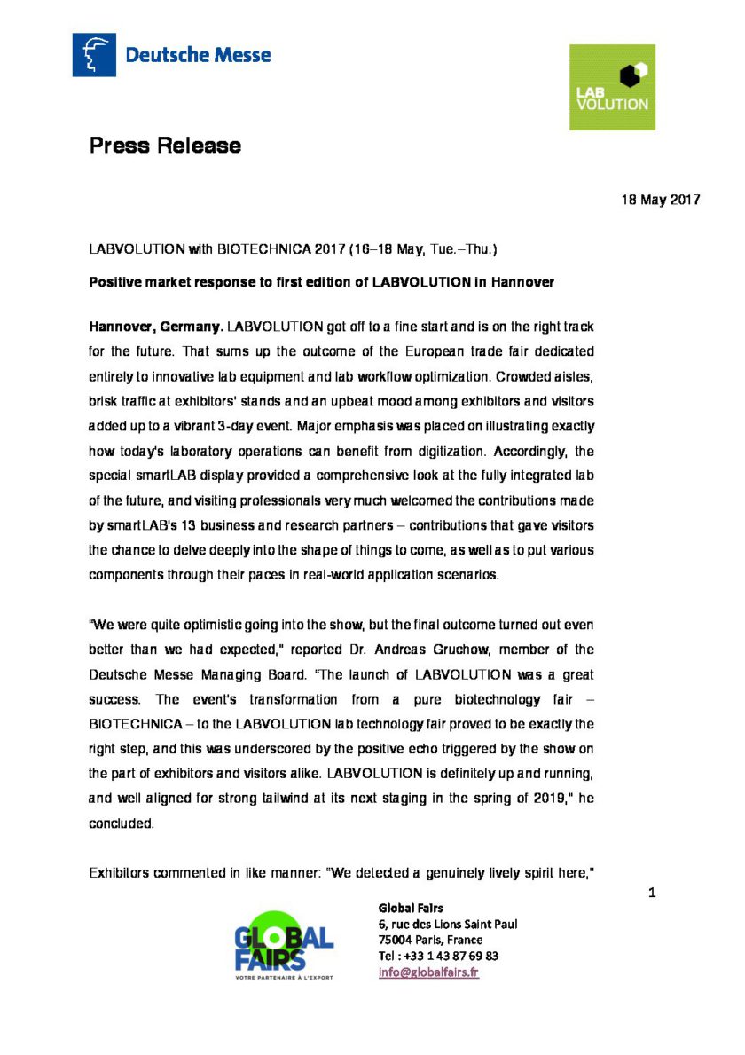 Positive market response to first edition of LABVOLUTION in Hannover