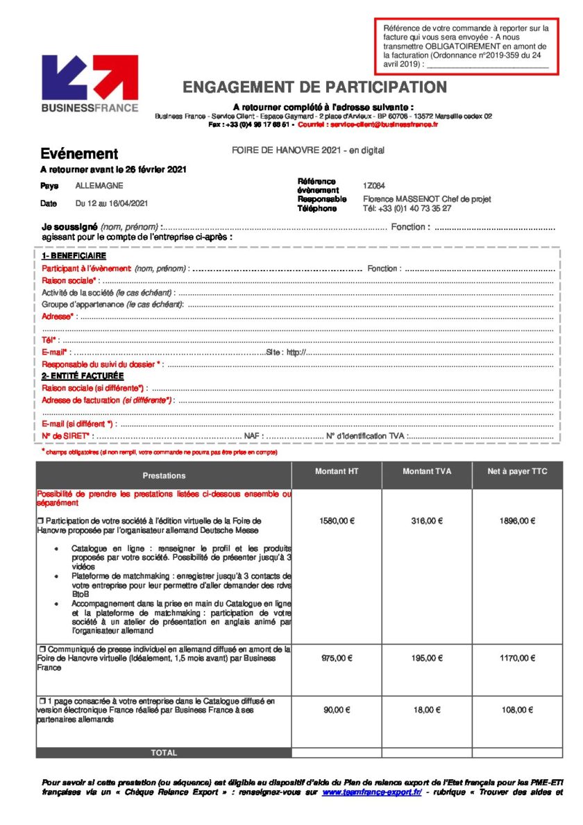 Bon de participation Foire de Hanovre 2021 en digital