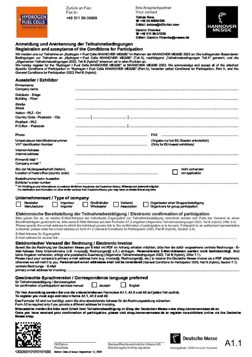 Registration Form, HANNOVER MESSE 2023, Hydrogen + Fuel Cells, interaktiv